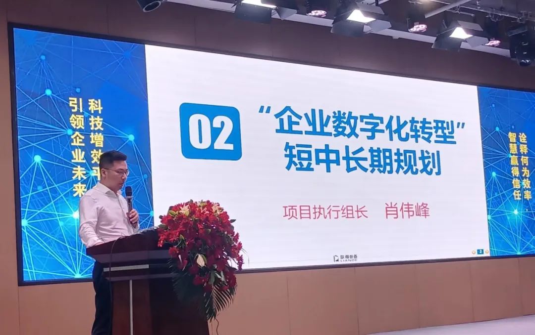 首先,總經(jīng)辦(數(shù)字化中心)總監(jiān)肖偉峰宣講聯(lián)得裝備數(shù)字化轉(zhuǎn)型的短中長(zhǎng)期規(guī)劃。他提出,公司將從“人、系統(tǒng)、流程”三個(gè)維度齊抓共管,通過(guò)3-5年持續(xù)數(shù)字化建設(shè),探索出一整套適合企業(yè)生產(chǎn)和運(yùn)營(yíng)管理的模式,穩(wěn)扎穩(wěn)打?qū)崿F(xiàn)數(shù)字化轉(zhuǎn)型,進(jìn)一步做大產(chǎn)能,大幅提升企業(yè)核心競(jìng)爭(zhēng)力。